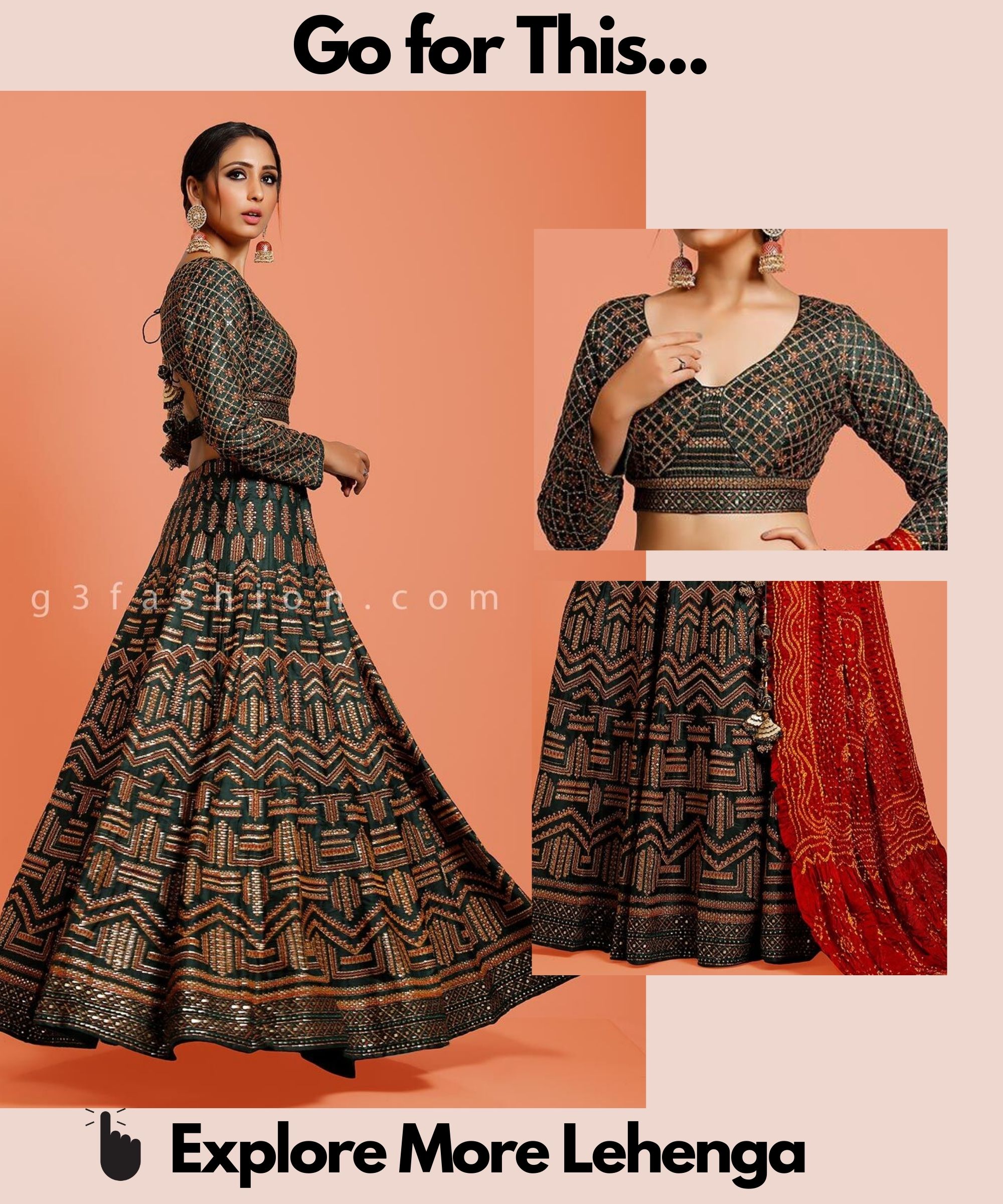 She also styled herself in a golden choker with deep green stones and a messy ponytail with smokey eye makeup and a nude lip. You can easily follow Mouni in green lehenga choli to steal everyone’s eyes.