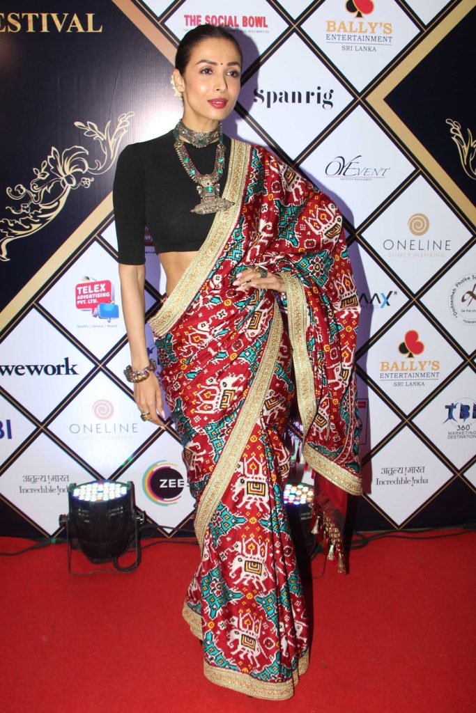 Malaika Arora in a Patola saree at the Dadabhai awards.
