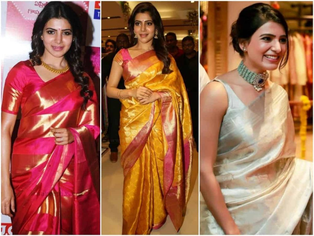 Samantha Prabhu in beautiful Kanjeevaram sarees at various events.
