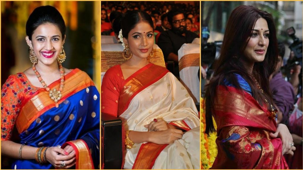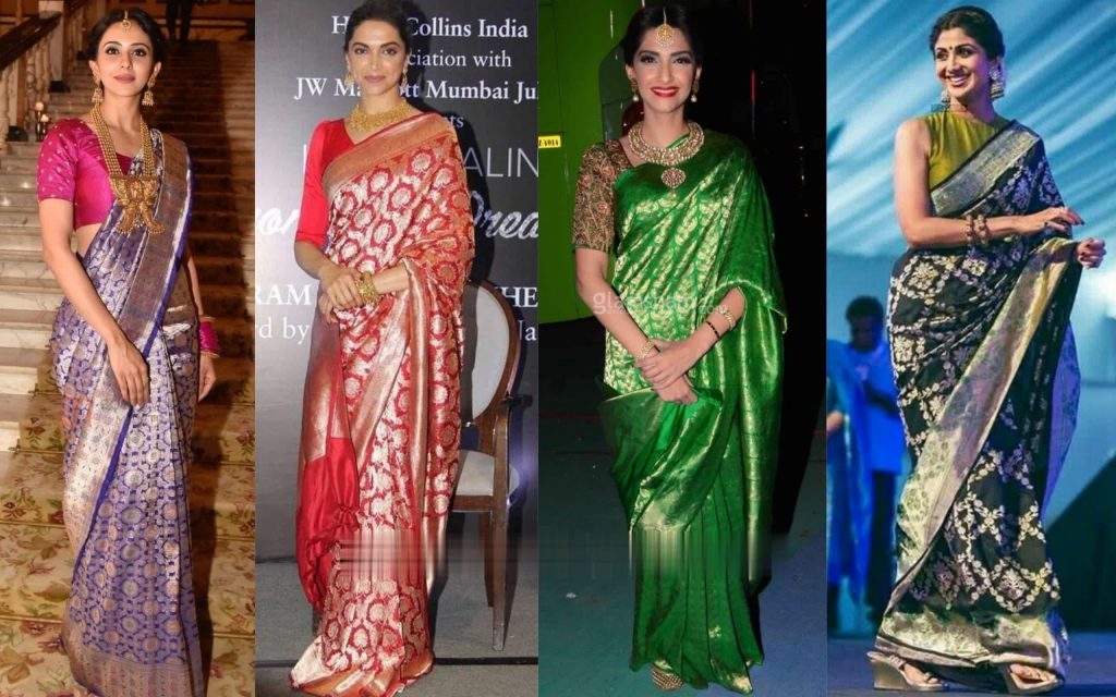 Bollywood and Tollywood celebrities in traditional Banarasi Silk Sarees.