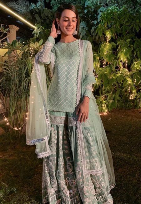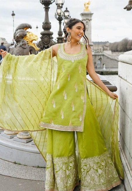 Wants to go with some stunning eid suits then must choose sharara salwar kameez. Because these are the latest trending style – 2022 and the most important thing is that they look more stunning at a time. I suggest you go for them this eid – 2022. And leave a loud statement behind you by wearing these outfits. Keep your makeup minimal and wear heavy Jewells to enhance its look.