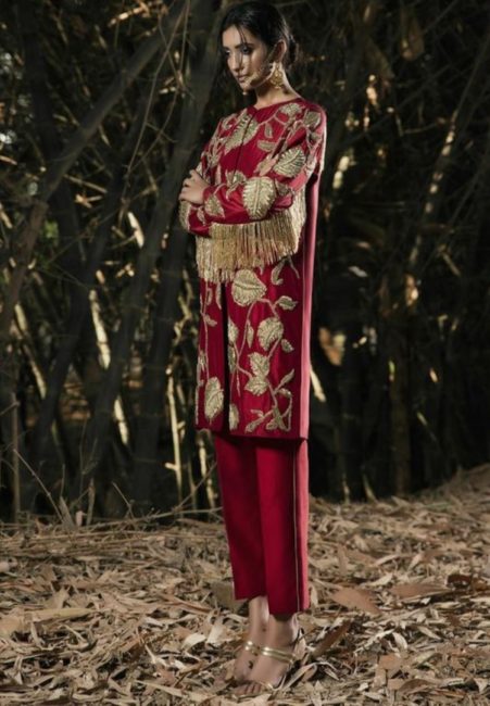 Heavily Detailed Red Eid Dress in Pants