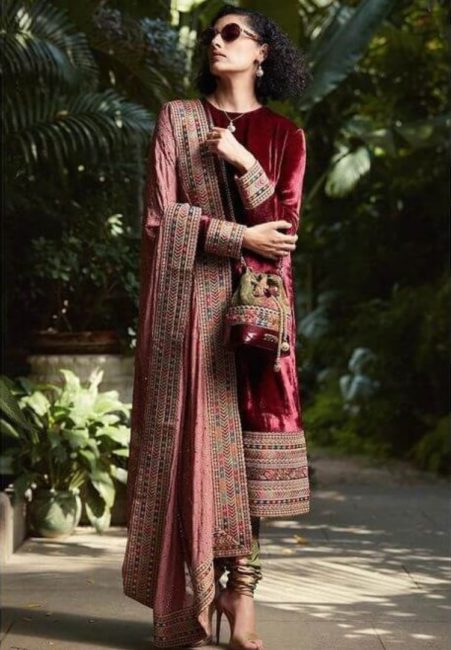 This is the ideal option for ethnic lovers, Who love to keep updated on their fashion and are ready to change with the trend. As we all know that velvet is in trend again these days. If you want to look rich, classic, stunning, and beautiful at a time then choose the most stunning red velvet designer full sleeves kurta on eid – 2022.