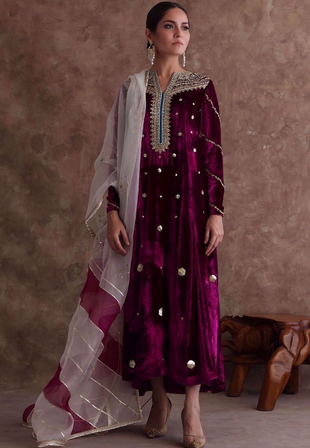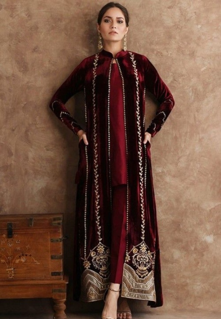Deep Maroon Velvet Kurti Suit For Eid – 2022