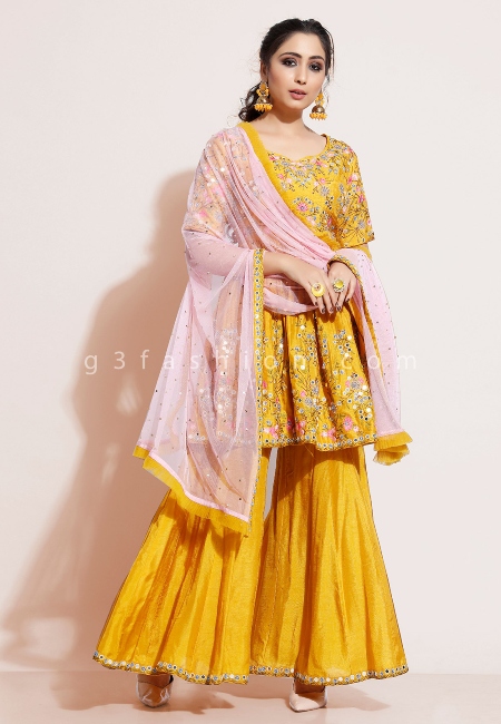 Yellow Elegant Peplum Style Salwar Kameez Eid Outfit Ideas