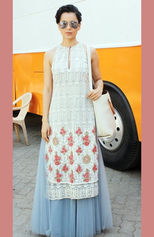 Kangana Ranaut never fails to impress everyone with her classy, bold, and elegant looks. Here she styles herself in this designer white and grey net palazzo suit design in a very simple way. Opt her style to keep it simple yet elegant by doing such a thing.