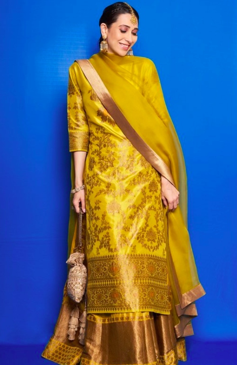 Karishma Kapoor’s Attractive Designer Gold Banarasi Straight Cut Kurta
