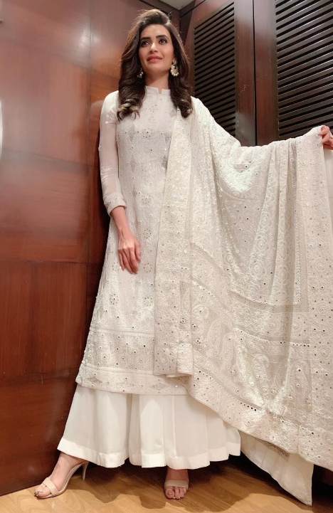 Karishma Tanna in White Lucknowi Palazzo Dress