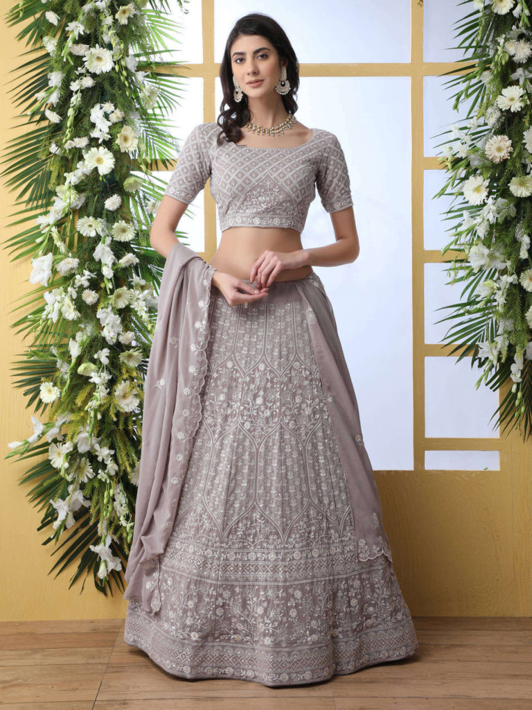 As a bridesmaid, you have to just look and classy. For this, get the best look in the shaded georgette lehenga. Also, A plain georgette lehenga and embroidered blouse give the feminine look. Also, you can try out the solid combination for georgette lehenga. You can pair it up with the ruffle dupatta.