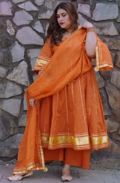 Peach Indofusion Salwar Kameez for Plus Size Women
