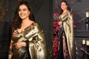 Also Kajol was in a Black and Gold saree, which had some interesting Indian prints to blouse and lower pleats of saree. Also seen Pragya Jaiswal in a black pre-draped saree which was in embossed embellished details and a skirt side cut silhouette.
