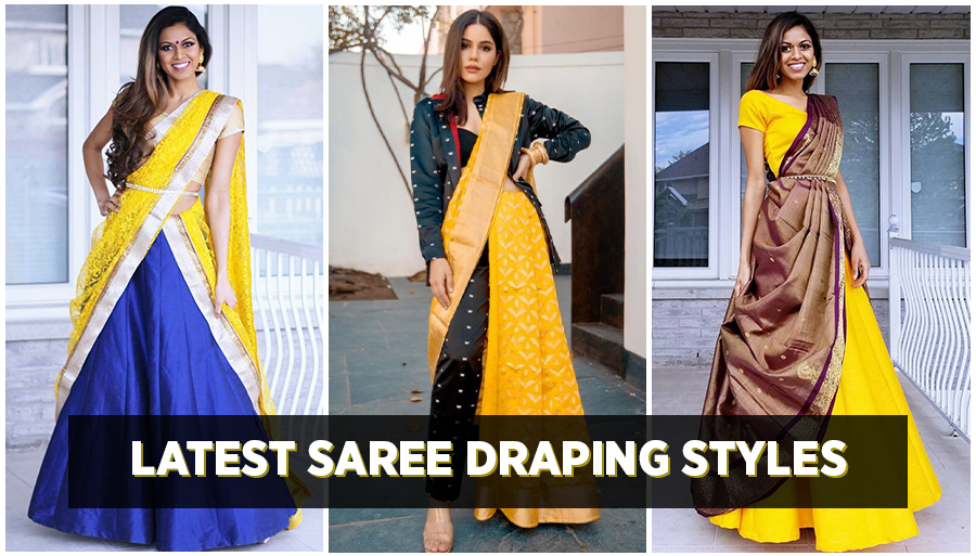 Designers Fancy Saree draping styles for wedding, party, festival wear. Learn How to wear Dhoti Saree, Pant Style Saree, Indo Western Saree.